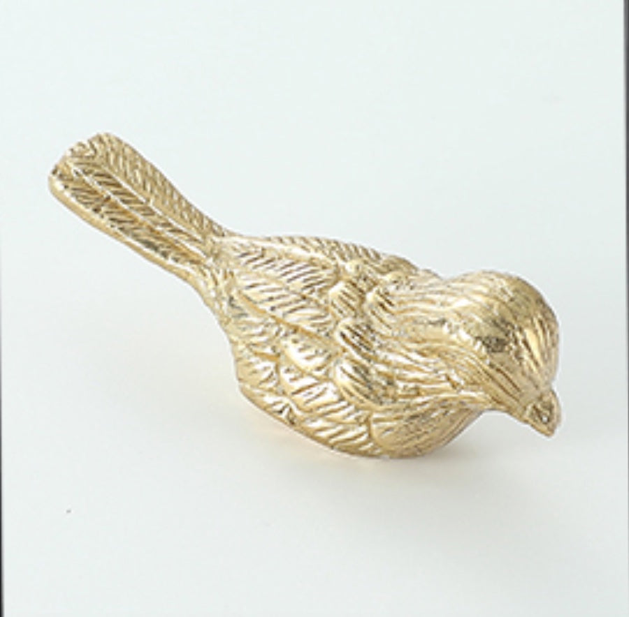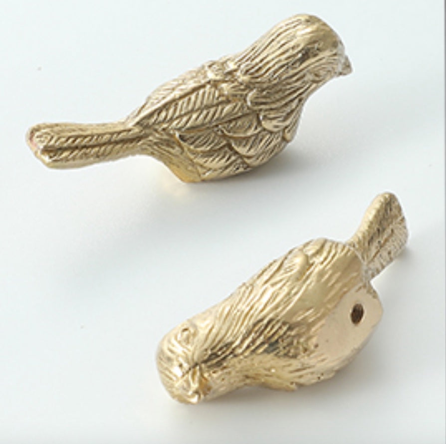 Cabinet knob, bird shape, light gold colour metal, mat finish, 1 piece