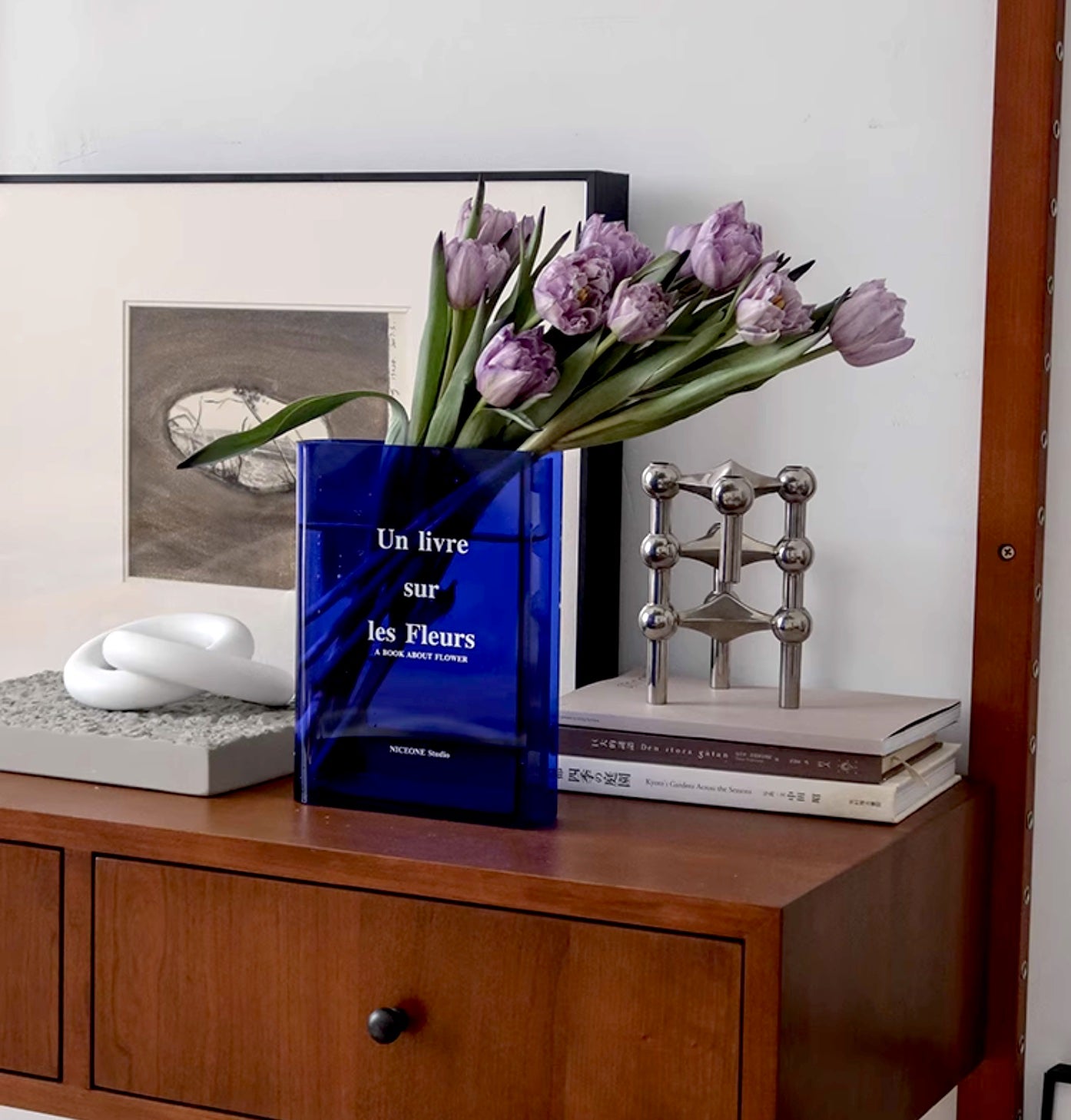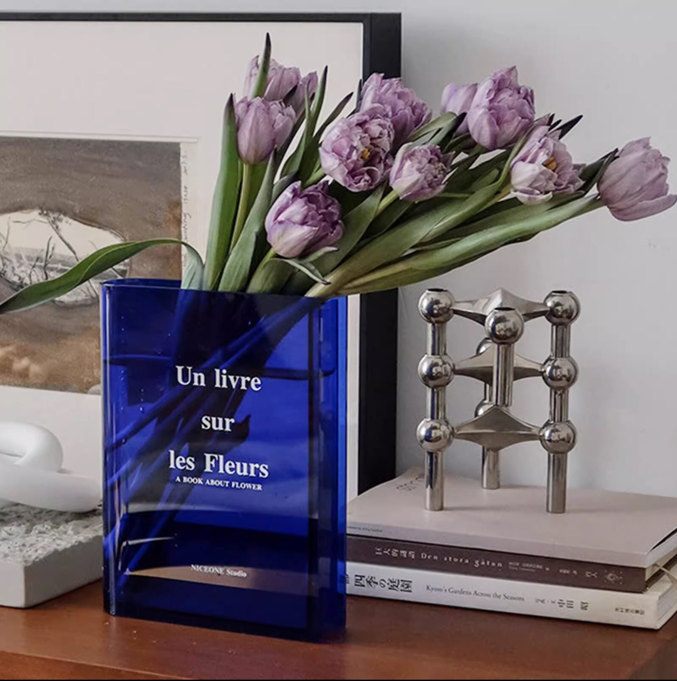 Klein blue acrylic flower vase, book shape. Add a pop of colour to your shelves or tables with this book shaped flower pot; perfect for your livingroom or bedroom decor. - ReStock info below -