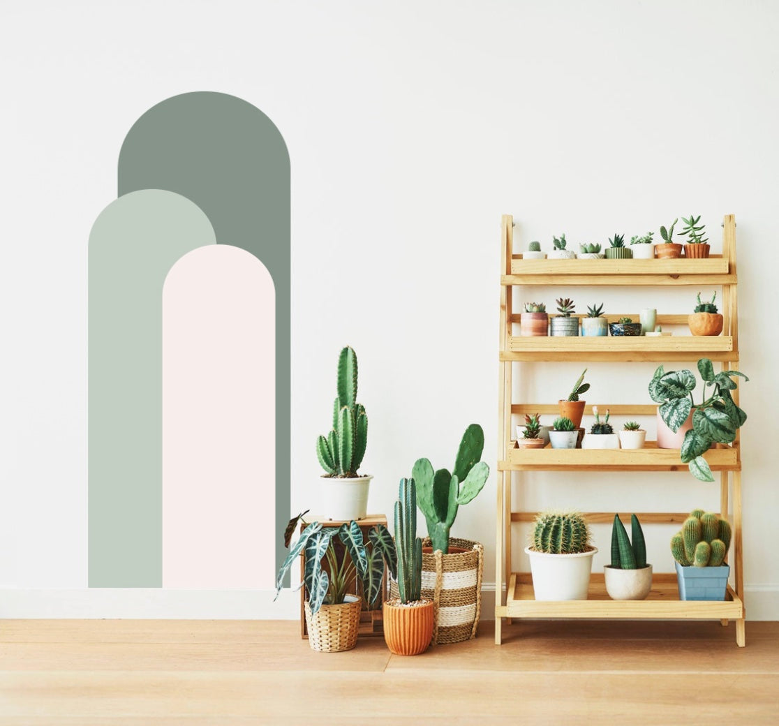 Light green Peel and stick Arches, wall sticker. Add a graphic and natural touch to your bedroom or living room walls with this arch shaped sticker. Its PVC material make it washable and water resistant to light stains/ splashes. - ReStock info below -