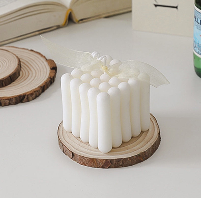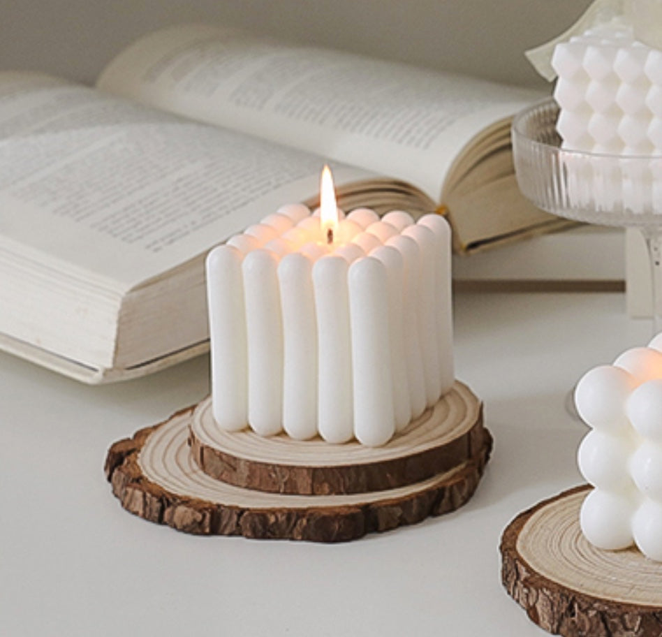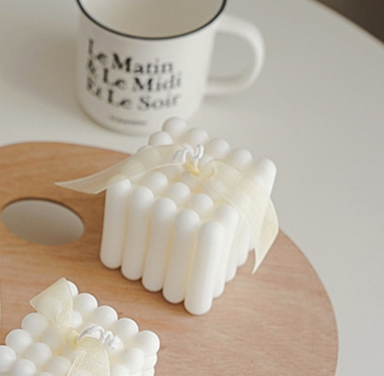 Soy and beeswax white Candle, squared with sticks shapes. Brings a beautiful decor touch to your shelves and a cosy ambiance when lighten up. Its natural color makes it perfect for many decor styles and palettes. - ReStock info below -