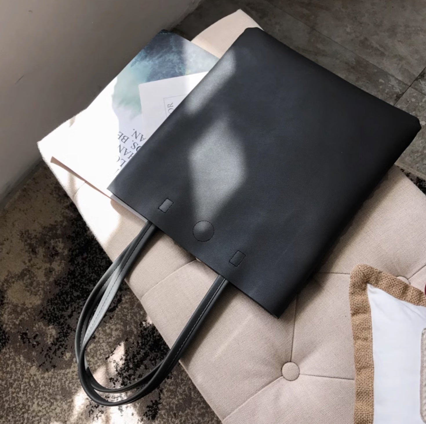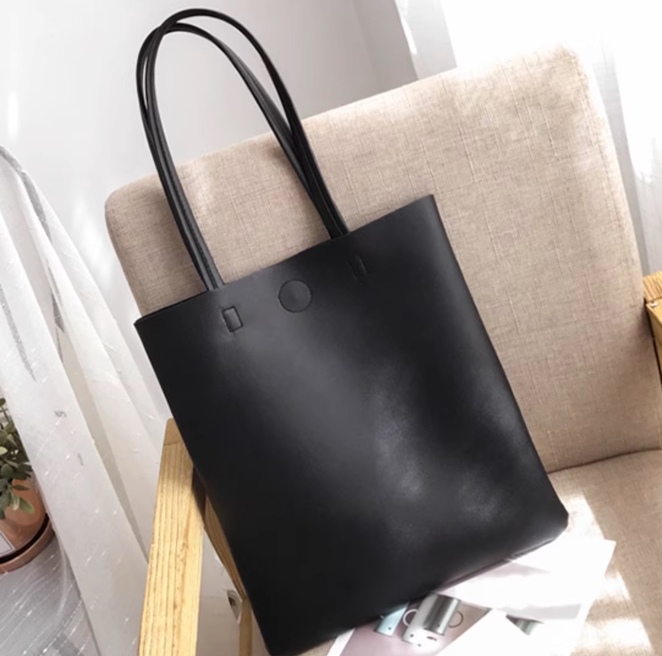 Vegan minimalistic A4 Tote bag, black leather style